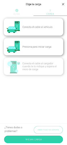 – El usuario puede seleccionar el enchufe de un cargador en el que iniciará la carga, donde se muestra los pasos a seguir para iniciarla.