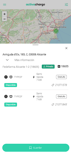– Mapa: indica la posición en la que se encuentra el usuario y la de los cargadores.