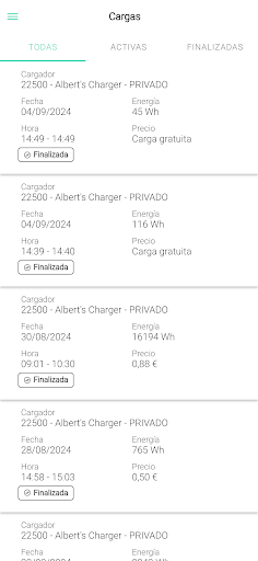 – Lista de cargadores: se muestra la información detallada de cada cargador.