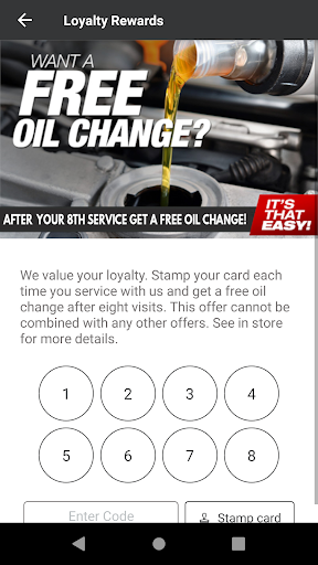 – Loyalty Rewards: earn a free oil change by stamping your digital card each time you visit our service center and track your rewards.