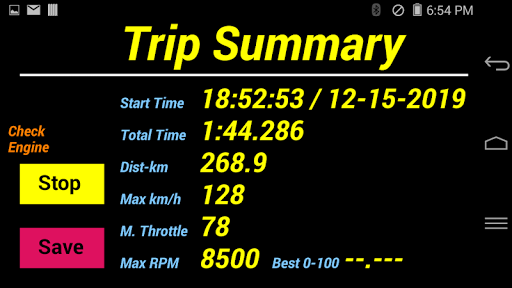 11. The trip summary mode comes with time keeping – you can use it to record lap time by touch SAVE button. You can stop the timing as concluding the trip and SAVE it as well. The best 0-60mph run will be also records here if it’s available.
