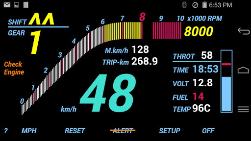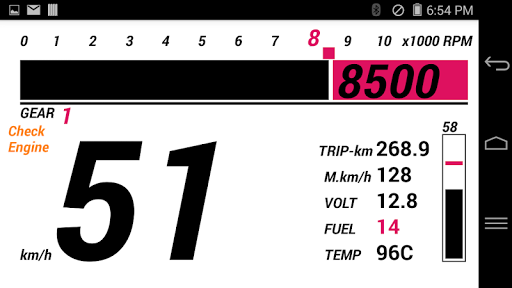 – Turns your Android phone to an useful digital instrument panel showing your car’s RPM, speed, throttle position, shifting indication, coolant temp, voltage in a colorful and easy to glance layout.