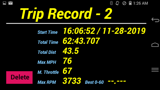 – ADD-PRO provides a handy 0-60mph (or 0-100km/h) test mode and trip summary recording feature. In a safe and well controlled condition, you can practice your launching skill and achieve the best 0-60mph records. You can save the best run record along with the max. speed, max RPM, max throttle, trip, time elapsed…trip information for later reference!
