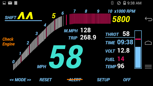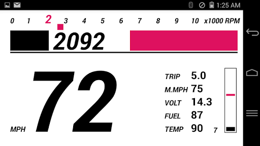 – Connect and paired an inexpensive Bluetooth ELM327 OBD2, it immediately turns your Android phone to an useful digital instrument panel showing your car’s RPM, speed, throttle position, shifting indication, coolant temp, voltage in a colorful and easy to glance layout.