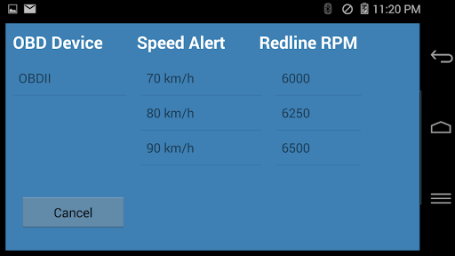6. You can touch the SETUP to configure the max speed alert and red-line RPM to match your car. NOTE: for safety, the Setup is disabled if car is moving.