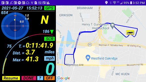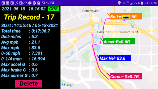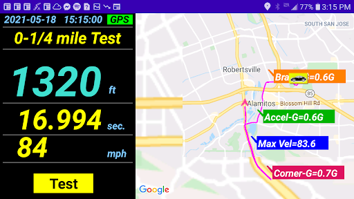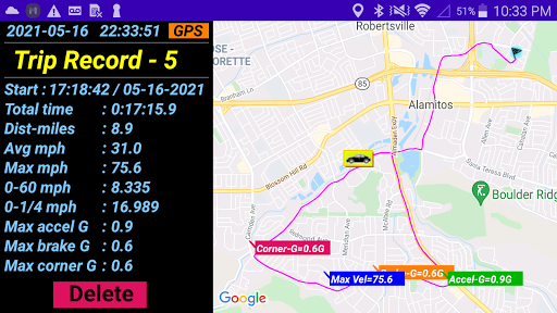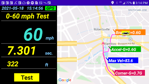 ART also provides handy features for testing 0-60mph and 0-1/4mile performance. You can save all the details of your road trip (or track data!) so you can review it later – includes, max speed, total time, distance, max cornering/accelerating/braking G-force, and your best 0-60 / 0-1/4 test records!!