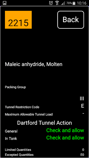 This app is for drivers carrying dangerous goods through the Dartford tunnel. This is an easier way to check tunnel action. Drivers know UN Number from transport documents.