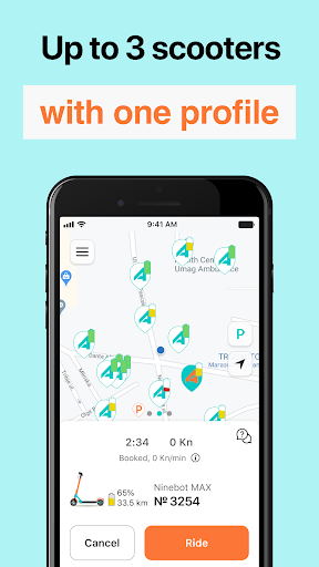 – enjoy the traffic and don’t worry about traffic jams or finding free Parking, you can Park your scooter in any of the thousands of Parking lots around you marked with our brand name.