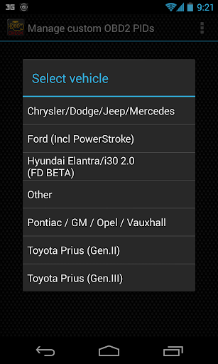 7) Usually this screen will not display any entries, unless you have added any pre-defined or custom PIDs in the past.