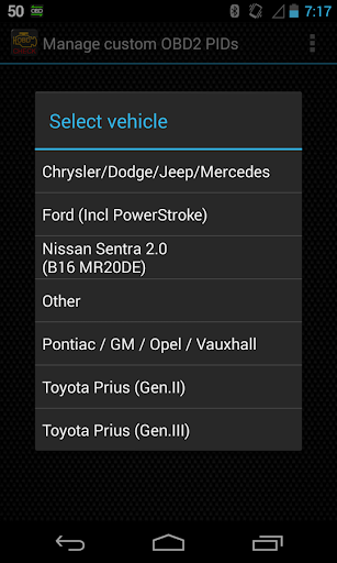 3) Select the appropriate engine type and return to Torque Pro main screen