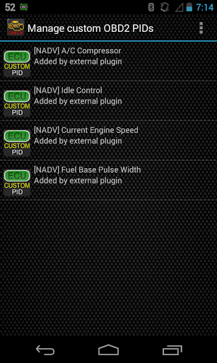 7) Usually this screen will not display any entries, unless you have added any pre-defined or custom PIDs in the past.