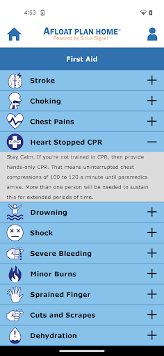 The app also includes an offline interactive looped audio first aid treatment guide for common on-water emergencies.