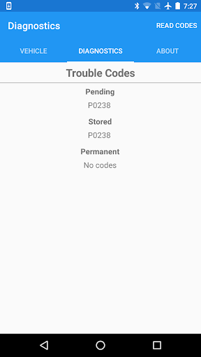 A simple ELM327 trouble code reader. Reads OBD-II trouble codes and DTCS.