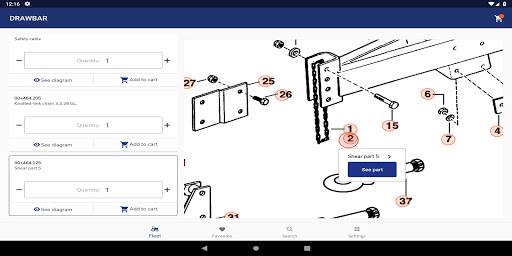 Navigate through the original parts catalogue for your machinery on your mobile device and add the spare parts you require to a shopping basket.