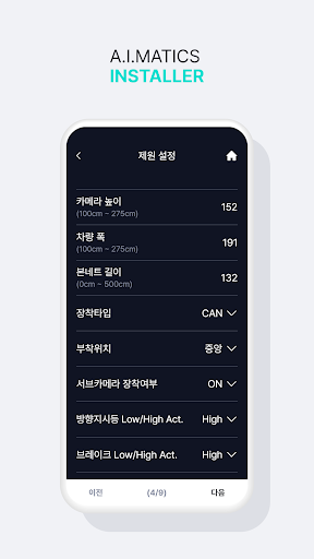 A.I.matics ADAS 제품의 장착 설정 및 서버 등록을 보조해주는 어플리케이션