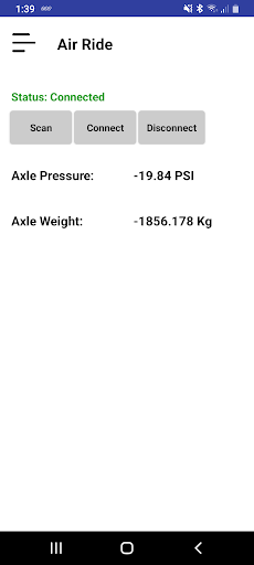 Air Ride allows truck driver to monitor and read both pressure and weight on the axle in real-time. The truck driver monitor sensor status through Bluetooth.
