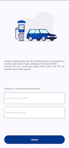 A principal diferença entre os dois combustíveis está na proporção entre o preço e o desempenho de cada um. Este app compara o preço do litro do álcool e da gasolina e mostra qual é o combustível mais vantajoso, financeiramente, no momento.