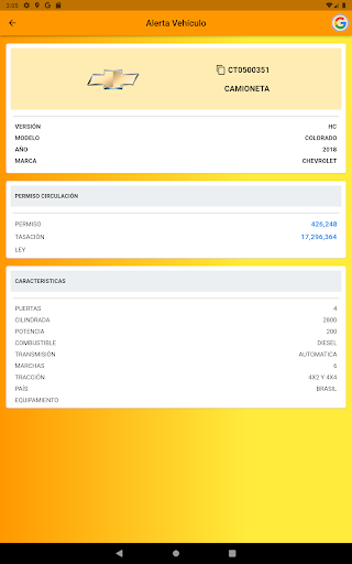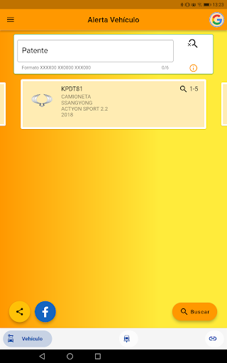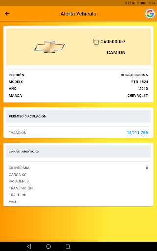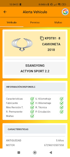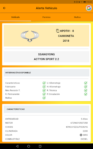 Alerta Vehículo es una aplicación que permite consultar información de un vehículo por la patente chilena, en la cual se detallan diferentes características que le permitirán tomar una mejor decisión al momento de querer adquirir un vehículo usado. Su uso es muy amigable solo debe usar una cuenta y tendrá acceso diario a 100 consultas las cuales al día siguiente se renovarán y podrá volver a consultar.