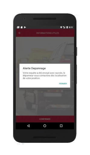 Application de géolocalisation et de sécurité. Alerte Depannage est une application mobile dont le but principal est de géolocaliser le client, de savoir son type de d’incident et d’assurer le dépannage. En outre, elle permet dans des cas précis d’avoir les contacts d’urgences tels que les commissariats les plus proches, des pompiers et des services publics d’urgence.