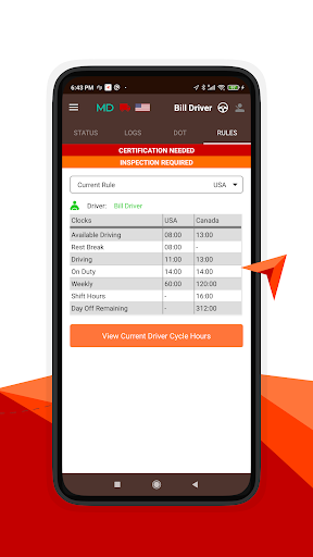 The app was developed and tested to perform in compliance with the Federal Motor Carrier Safety Regulations (FMCSR) for American drivers and Ministry of Transportation (MOT) standards for Canadian drivers.