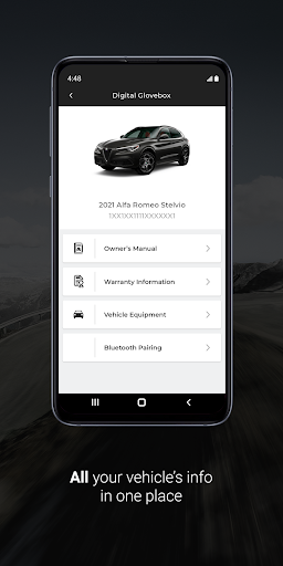 Whether you’re out adventuring in your Alfa Romeo Brand vehicle, relaxing in the comfort of your home or just about anywhere else, the new Alfa Romeo app lets you stay in touch and helps you stay in control of your vehicle like never before. Need to contact your dealer? No problem, simply use the My Dealer feature to find your preferred dealership’s address, schedule service appointments, or call them directly with the touch of a button. Easily access your vehicle’s info—including the owner’s manual, service history, and more—with the My Garage and Digital Glovebox features. And stay up to date on open recalls using the Recall Alert so you’re always one step ahead. If your vehicle is equipped, you can remotely start or stop your vehicle+, lock or unlock the doors and activate the horn or exterior lights. You now have access to more services than ever, ranging from entertainment to available Navigation, safety and security and more, all combining to offer new levels of convenience and the peace of mind you deserve. Some features are also available on compatible smartwatches, including Wear OS.