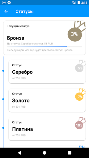 4 уровня статуса: «Бронза-Серебро-Золото-Платина».