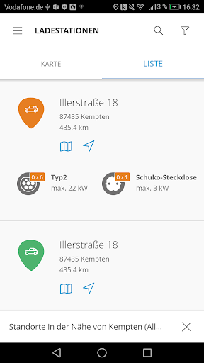 – Live-Anzeige aller verfügbaren Ladepunkte der AllgäuStrom Kooperation sowie Ladepunkte angeschlossener Roaming-Partner je nach Vertragsabschluss