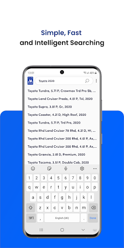 * Search for all popular brands and their models using a quick and intelligent search function based on Make, Model, Model option, Year, and Variant code.