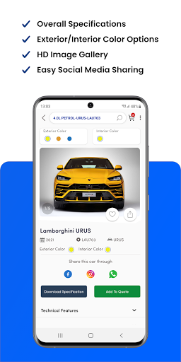 * Share the cars you like with your friends on leading social media platforms with a single click.