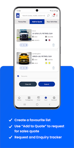 * Use the “Add to Quote” function to request sales quote for the cars you like.
