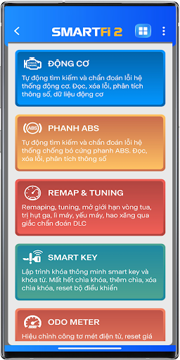 Ứng dụng tích hợp chức năng chẩn đoán lỗi thông minh cho mô tô và xe máy – SMARTFi2. Hỗ trợ chẩn đoán với 12 chức năng chuyên sâu .