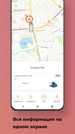 Ты всегда видишь на экране полную информацию о заказанной машине: время подачи, марка, цвет и номер, имя водителя.