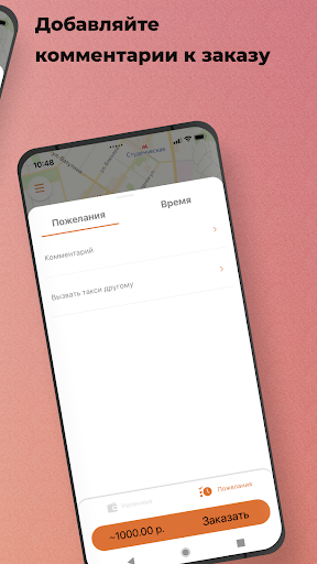 Выбирай удобный тариф, напиши комментарий к заказу и желаемое время подачи.