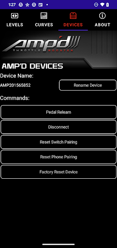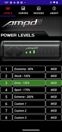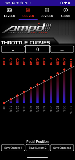 This Bluetooth App provides full control over the Amp’d 2.0 Throttle Sensitivity Booster. You will have the ability to instantly select from 5 preset throttle curves or customize your own throttle curve and save it into the device so you can alternate from custom curves and preset curves in seconds. The Amp’d app will find your Amp’d 2.0 module via Bluetooth and pairs in no time.