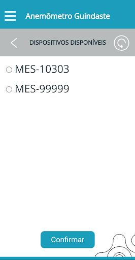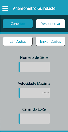 Aplicativo utilizado para configurar via Bluetooth o equipamento ANX103, que monitora a velocidade do vento e alerta ao operador quando esta velocidade atinge o limite estipulado.
