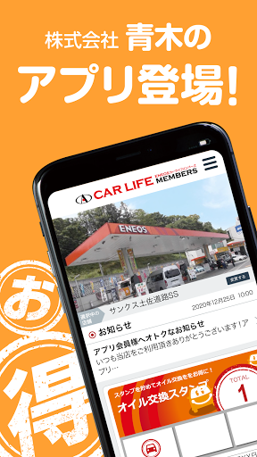 当社の公式アプリ「AOKI カーライフメンバーズ」は手洗い洗車・オイル交換・ピュアキーパーをするたびにスタンプが貯まり、決められたスタンプ数を貯めるとお得なプレゼントクーポンと引き換えができる、貯めて楽しいもらえて嬉しいお得なアプリです。その他、アプリで簡単にコーティング・車検などのご予約や、お得なクーポンやキャンペーン情報も配信いたします。