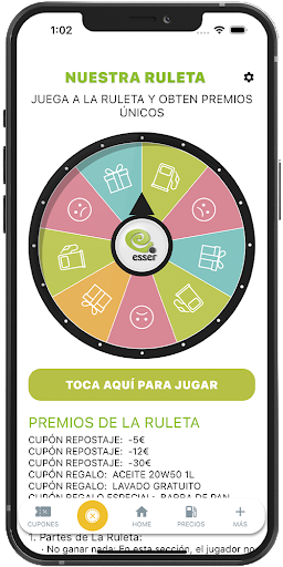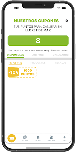 ¡La diversión continúa con nuestra emocionante ruleta! Cada tirada te acerca a increíbles regalos, desde descuentos en repostaje hasta experiencias gastronómicas. Usa tus puntos para adquirir tiradas y sabrás al instante si has ganado alguno de los premios.