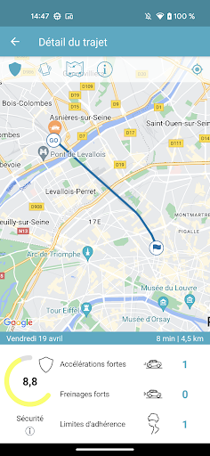 L’application fonctionne en arrière-plan et détecte automatiquement le début et la fin de vos trajets.