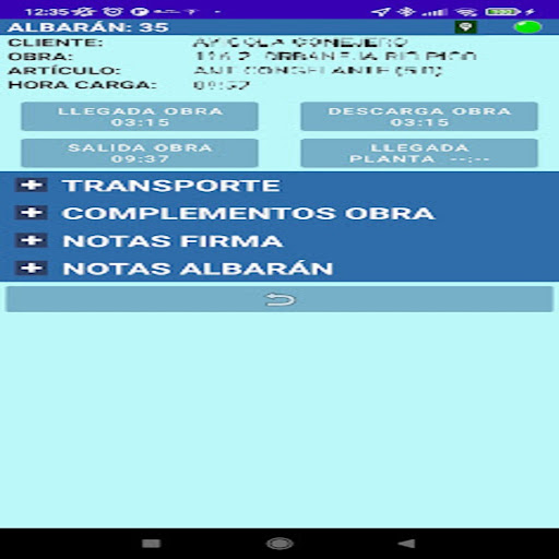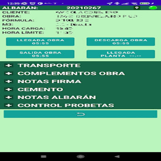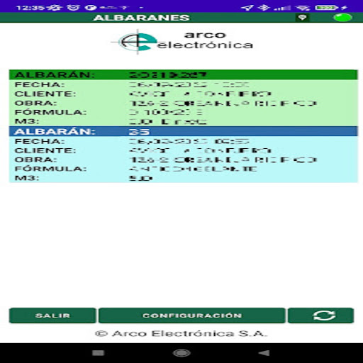 Aplicación de Arco Electrónica cuyas funcionalidades son: la firma digital de albaranes, recoger la posición del dispositivo, recoger datos de viaje y proporcionar información de las probetas.
