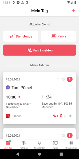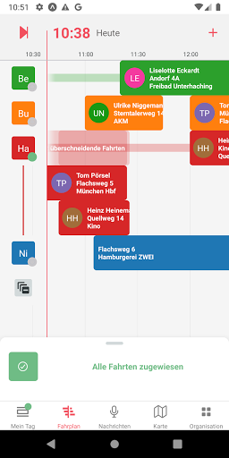 Du disponierst einfach per drag&drop direkt in der App – die Fahrer werden per Push-Notification über neue Fahrten und alle sonstigen Neuigkeiten informiert. Mithilfe von Sprachnachrichten kannst du innerhalb deines Unternehmens kommunizieren und bleibst dennoch immer telefonisch erreichbar.