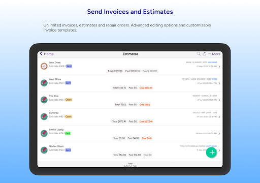 Keep track of all vehicle owners that passed through your shop. Generate billing statements, assign vehicles and create invoices and estimates for your clients instantly.