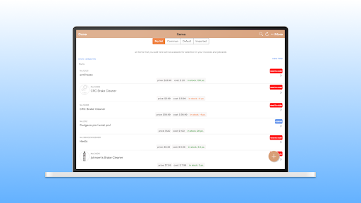 ARI comes with a list of 400+ default car parts; however, you can create your own inventory. There are no limits on how many items you can add to your inventory.