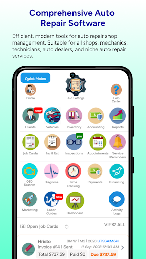 The app is suitable for mobile mechanics, auto shop owners, independent technicians, auto dealers, or anyone who has a fleet of vehicles and is looking for a way to manage it.