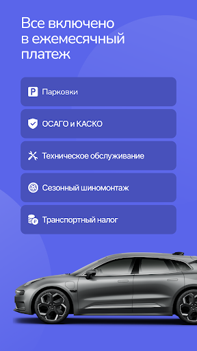 Разнообразные варианты подписок удовлетворят даже самых требовательных клиентов. У нас прозрачные цены, без скрытых платежей. И все необходимое уже включено: КАСКО + ОСАГО, сезонный шиномонтаж, парковки, транспортный налог, набор автомобилиста.