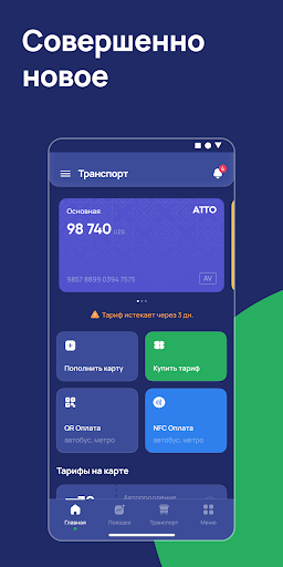 Application for managing and replenishing a card designed to pay for public transport in the city of Tashkent (Uzbekistan).