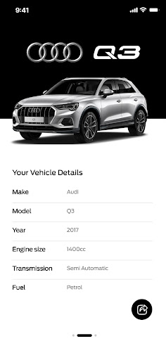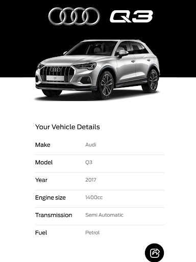 My Audi Q3 enables you to get all the details of an Audi Q3 by simply putting its registration number.