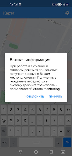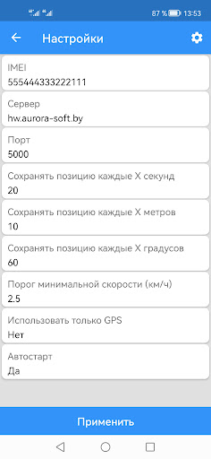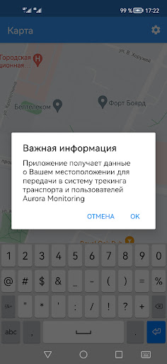 Мобильное приложение для предоставления данных о местоположении, необходимых системе GPS/Глонасс мониторинга транспорта Aurora