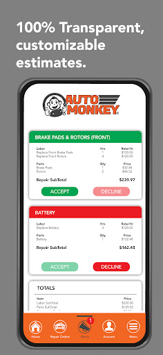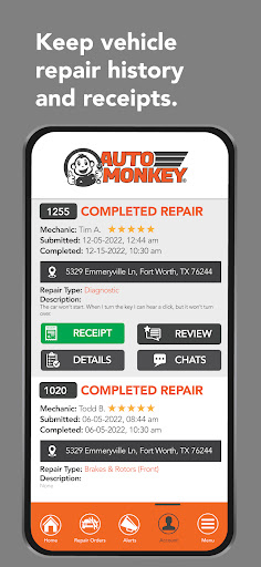 Convenient, Inexpensive, onDemand Automotive & Car Repair Services done in your driveway or parking space. Auto Monkey qualified and vetted mobile mechanics come to you. Backed with a 24-month/24,000 mile warranty. Auto Monkey approved mechanics provide a range of light mechanic repair services including oil changes, brakes, alternator, starter motor, belts, tune-ups, radiator, A/C and heater issues, suspension and more. Car repairs are quality and pricing is lower than any competing apps and shops. Sorry, No Cash Transactions. All payments are made thru app’s secure checkout process to provide a more safe and secure experience. Auto Monkey’s app a provides safe, affordable, reliable car repair service experience.