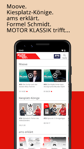 Podcasts: Die beliebten Podcasts von AUTO MOTOR UND SPORT haben ihre ganz eigene Rubrik und können bequem in der App abgespielt werden.
