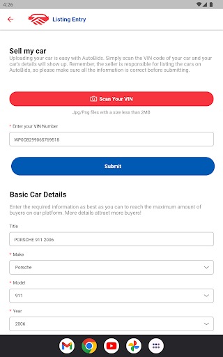 Listing your car on AutoBids is 100% FREE! Your listing will be shown to millions of people with the help of our App. AutoBids is a new and innovative platform aimed at bringing car auctions to the public. Whether you are looking to sell your vehicle or buy your new one, you can always find a sweet deal on our App. Find new & used cars on AutoBids. Whether you are looking for a used truck or a deal on a family van look no further! Start bidding to get the car that fits your needs.